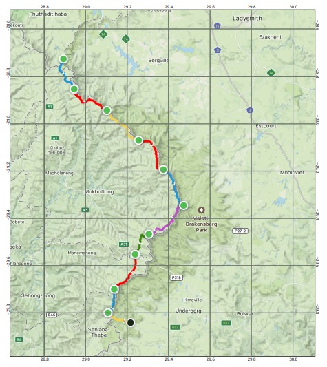 Sentinel to Bushman’s Nek via Mt Aux Sources, Cleft, Champagne, Giants, Thabana Ntlenyane